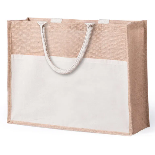Bolso en Yute con bolsillo y manijas en lona Cruda, bolsillo interno