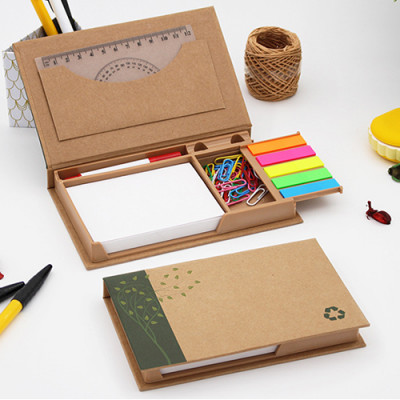 Set Post It Forest, en carton, de 16.7 x 10.1 x 2.2 cmts, con taco de papel, bolígrafo, clips de colores, banderitas adhesivas y regla